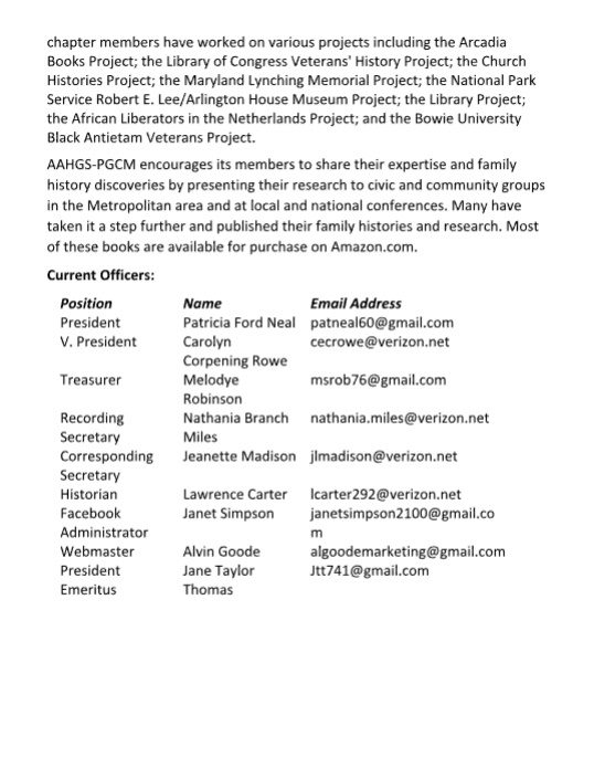 genealogical studies of African Americans residing in the area.