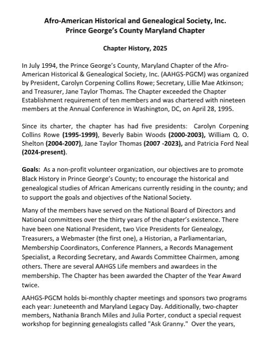 Is a non-profit volunteer organization dedicated to promoting Black history in Prince George's County.